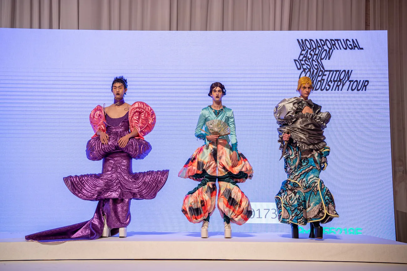 The seventh edition of the Fashion Design Competition ModaPortugal held in Alfândega do Porto brought together the Portuguese industry and 18 students from eight of the most renowned fashion design schools from six European countries: Finland (Aalto University), France (Institut Français de la Mode), Italy (Polimoda), Switzerland (HEAD Genève), United Kingdom (London College of Fashion), and Portugal (ESAD, FAUL, and Modatex).